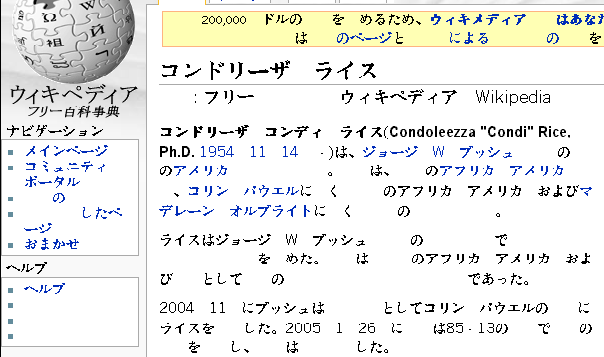 ブラウザでたまにこのフォントが使われてしまい、片っ端から漢字が消えたページが表示される(左図参照。ちなみにヤフーで「コンドリーザ」「ライス」で検索したら30万件以上引っかかってきて鬱陶しいので「萌え」を追加して検索したらそれでも100件以上引っかかってきた。ライス姐さんおそるべし)。セリフ系フォントだと全滅らしい(T▽T)ウィキペディア読めねえ。
