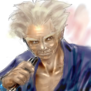 どんなものなのかな、と思って「wondercatstudio」というところからCGIその他を、アプレットは「しぃ堂」というところからダウンロードしてきました。IEで見る限りはなんとか動くけど、ネスケだと何か追加しなければならないプログラムがあるのか、どこかのダウンロードサイトに飛ばされてしまいます。でも行った先でなにをダウンロードすればいいのか把握できてないので放置。というわけで、公開はしてません。そもそもサイトも半分休止してる有様だし(^_^;)とかいいつつ、こんな絵を描いていたり(特定のモデルはいません。喰えないジジイを描いてみたかったの)