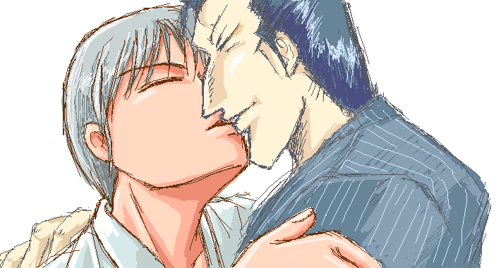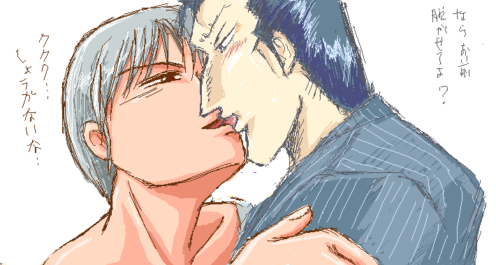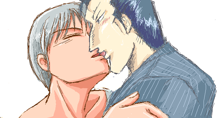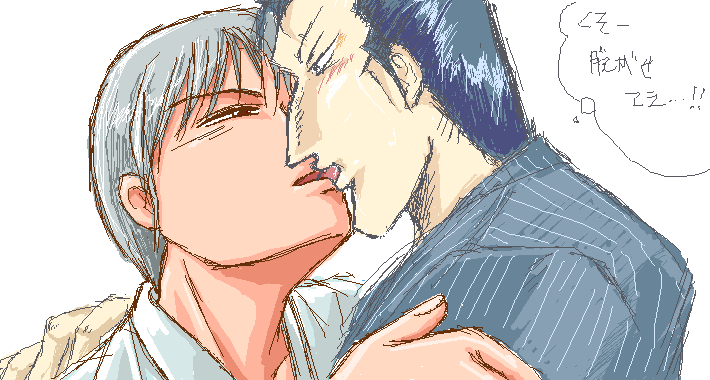 ![]() アカギ→チャウチャウさん/矢木さん→とまさん こんな矢木アカが見たかった!! ピンクのオーラ大放出な矢木アカに、興奮が止まらなかったです。これ何ていう楽園!? アカギも矢木さんもすごい幸せそうな表情で……ああ、夢のようだ!! ![]() いつの間にか舌まで触れ合わせるふたり。矢木さんの股間、いや欲望が膨らみすぎて弾けそう!! 熱く見守っている私の期待も膨らみすぎて(略) ![]() 脱いだ……!!(期待通り☆) ![]() 「矢木さんは脱がないの?俺ばっかり不公平だよ」と言うアカギに対して、矢木さんのこの台詞! ちなみにこの場面、矢木さんはアカギのお尻を、アカギは矢木さんの股間を触っているという裏設定が!! しかもまだ続きがあるのですが、次のページで終了です。 絵茶ログその4へ 戻る |