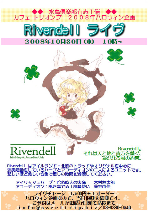 ちょっと色々あって、10/30の『rivendell ハロウィンイブライブ』のパンフ等のイラストを描かせて頂くことに。